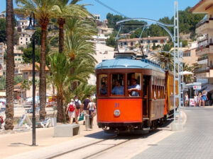 - En tranvía: Desde el pueblo de Sóller hasta el puerto, un trayecto muy pintoresco.